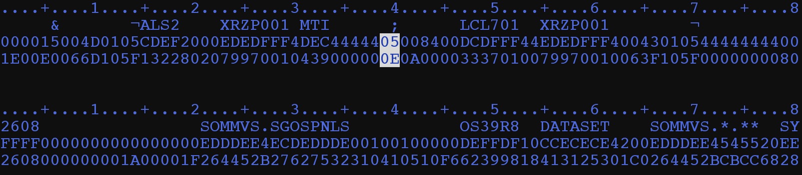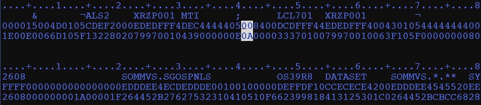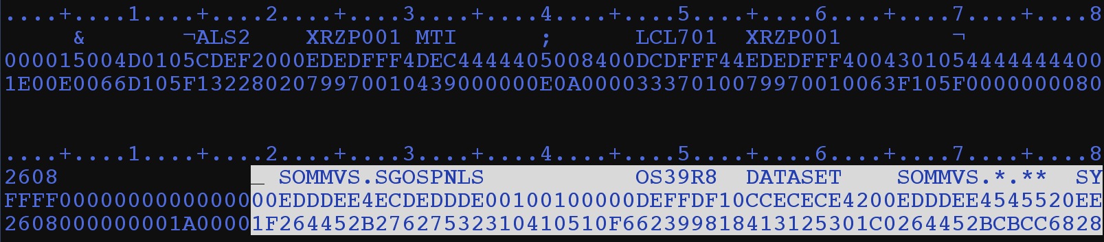 e.g. Relocation section type x’01’ followed by a length byte, followed by the dataset „SOMMVS.SGOSPNLS“ accessed. After that you can see the relocation type X’03’ etc. following. There is no way to extract such data via the standard SORT programs until such features will ever built in.